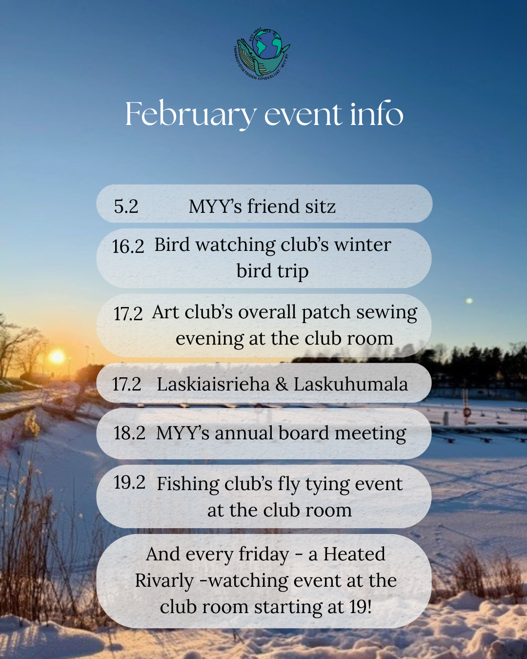 Helmikuun kuukausitiedote / February event info